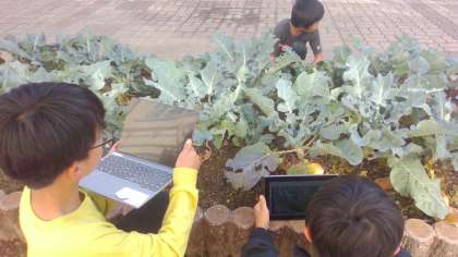宿泊学習を終えて、久しぶりにブロッコリーを見に行くと、「小さいブロッコリーが真ん中にできている!」と子どもたちが報告してくれました。