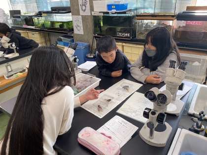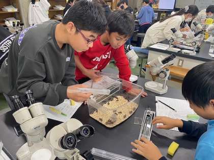 コオロギの鳴き方や音を観察してみると、オスしか鳴かないことや、翅を一定のリズムでこすり合わせていること、翅にはヤスリ器とコスリ器があることなどを発見できました。