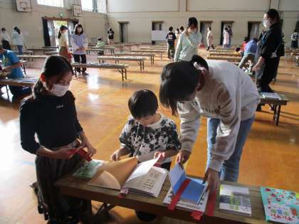 先日、選書会がありました。たくさん並んだ絵本を見ながら、一人2冊、図書館にあったらうれしいなと思う本を選びました。本に夢中になっている人や、友達と「これいいね!」と相談している人がいました。