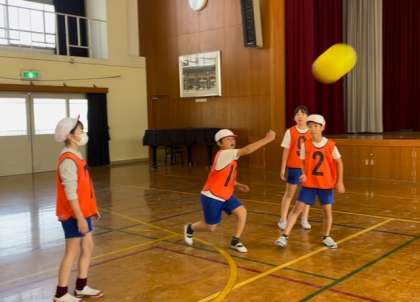 ソフトバレーの授業に取り組んでいます。どうやったら全員が楽しめるか、どうやったらラリーが続くのか、意見を出し合いながら学習を進めています。