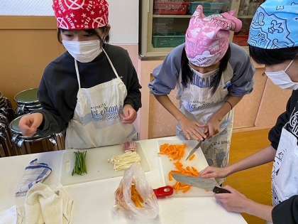・一人一人がていねいに野菜を切ったり、皮をむいたりしてくれたので良かったです。でもじゃがいもがかたかったのでもう少しゆでるかいためるかしたかったです。