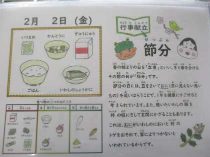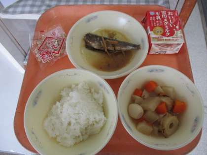 ごはん、牛乳、いわしのしょうが煮、関東煮、いり豆