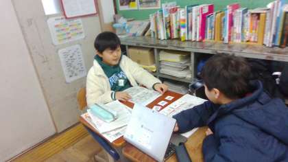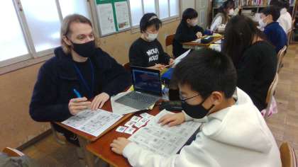 外国語の学習で、ALTの先生と道案内のやり取りの練習をしています。英語で一生懸命伝えようと頑張っていました。