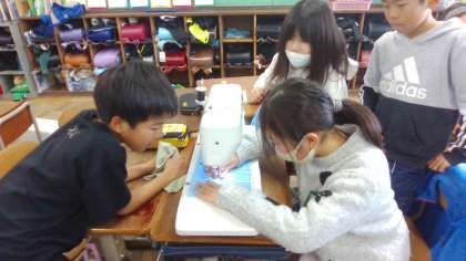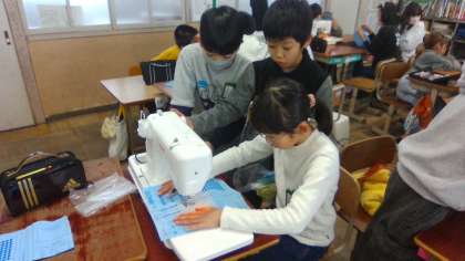 初めてのミシンを使っての学習に取り組んでいます。まずはまっすぐ縫う練習を頑張っています。次回からいよいよ作品(エプロン)作りに入る予定です。完成が楽しみですね。