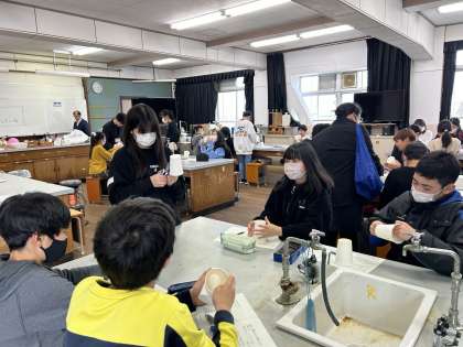 子どもたちは、「中学校ってどんな雰囲気なんだろう?」と不安や緊張もしているようでしたが、先輩が優しく待っていてくれたり、中学校の1日の流れや、部活動のことも丁寧に教えてくれたり、中学校の先生の授業を受けたりしている中で、「楽しみやわ!」という声がたくさん聞こえてきて、中学校に向けて、それぞれ自分で頑張りたいことや楽しみを見つけているようでした。