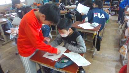 やるべきことをやり切って気持ちよく5年生をしめくくろう!ということで、算数の復習課題に取り組んでいます。お互いに教え合いながら、みんなで頑張りました!