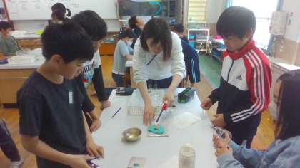 今日は「ものの燃え方」の単元で、上のあなと下のあなは空気の通り道と関係があるのだろうかという学習をしました。班で協力して実験に取り組むことができました。
