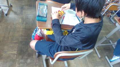 今日は1㎤の立方体を積み上げて、体積を調べました。