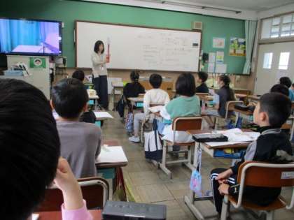 理科では、気温の測り方について学習しました。メモリをしっかり見て測るように教えてもらいました。