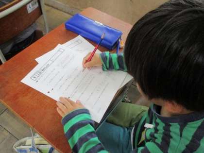 算数科「一億をこえる数」の復習をしました。大きい数になると計算も難しくなり、落ち着いて考えることが大切だということに気づいていました。一つ一つの問題を教科書やノートを見ながら、丁寧に一生懸命解いていました。