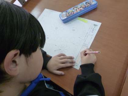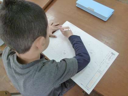 上手に持つのは難しかったけれど,がんばって線のなぞり書きができました☆