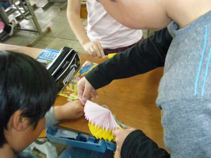 掲載している写真は,算数科『角とその大きさ』の授業中の一コマです。扇を作って,色々な物の角度を調べました。子どもたちはイキイキと活動していました。来週からは,子どもたちお待ちかねの分度器を使った学習に入っていきます。