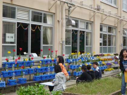 一人ひとりが、校内を歩き、自分が好きな花を選んで、集中して取り組んでいました。