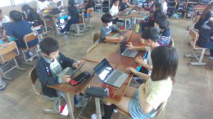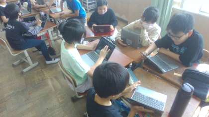 タブレットのシンキングツールを使って、自分の意見を相手に伝えたり、友達の新しい意見に気付いたりしました。