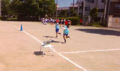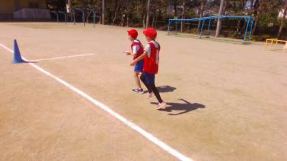 最近は雨が続いていたので、久々に運動場で体育を行うことができました。