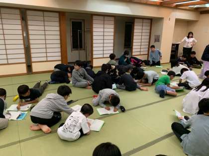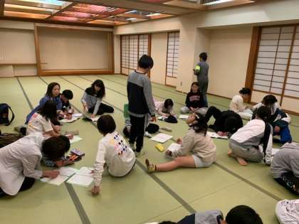 今日1日のふりかえりをしています。この後は就寝準備をして、消灯です。