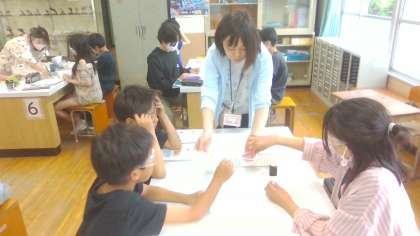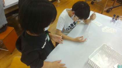 理科の学習では、食べ物にふくまれているでんぷんが唾液によってどう変わるか実験をしました。実験用具の使い方を慎重に確認しながら班で協力して取り組んでいました。