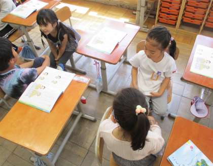 パート1より会話が弾み、あいづちをうったり、今度一緒に遊ぼうと伝えたりしている児童も見られました。