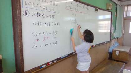 整数のかけ算の筆算のやり方をもとにして、考えることができていました。