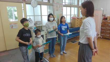 国語の授業で、梅津北小学校のいいところを出し合い、そこにはどのような人がどのような思いや考えで関わっているのかを考えました。給食調理員さんや保健室の先生などへ実際にインタビューをして、教職員の方々の思いや考えを知ることができました。