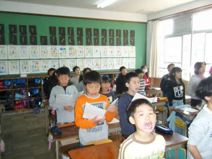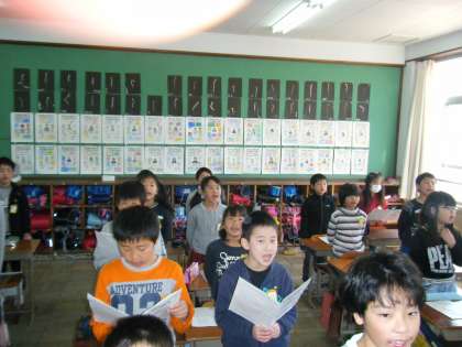 梅津北小学校では,月毎に歌を決めて朝の会の時間に歌っています。今月は,『友だちになるために』を1年生を迎える会に向けて頑張って歌っています。