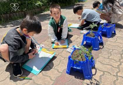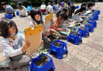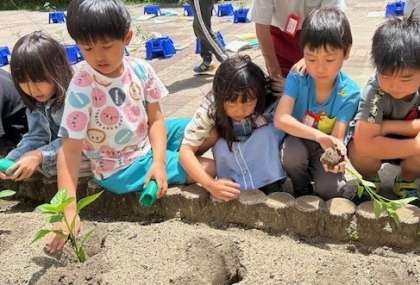 子どもたちは、ミニトマトの成長に目を輝かせています。実ができてきた人もいました。これからも水やりをしっかりと続けていきましょう!