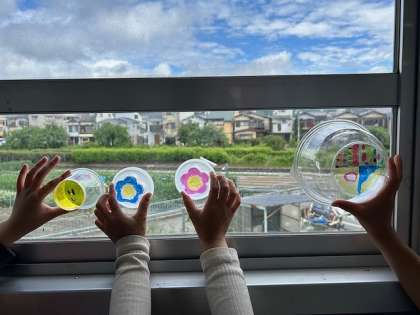 光に通してみると、たくさんの色がキラッキラに輝いていました☆