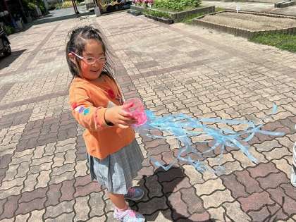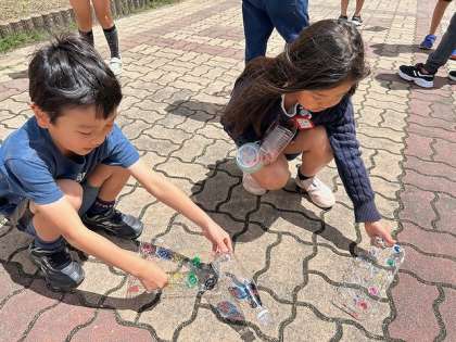 色と色が重なったら、またちがう色になることにも感動していました☆天気も晴れてよかったね!