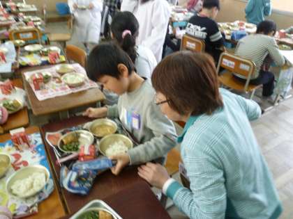 今日の交流給食は,1・2年生の時にお世話になった大好きな先生といっしょに食べました☆