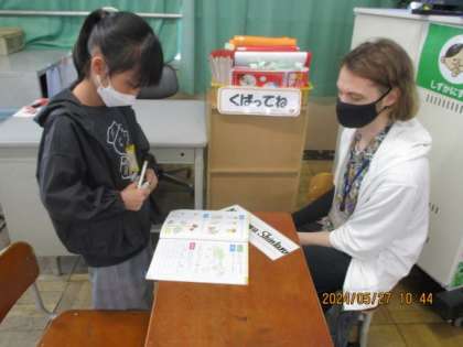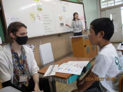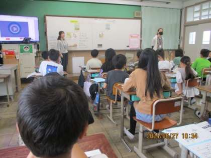 ALTの先生に来てもらい、実際にどのように友達を遊びに誘うのかを教えてもらいました。教わったことをインタビュー形式で交流をしました。
