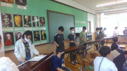 音楽の授業で合奏に取り組んでいます。初めての楽器にチャレンジする子もいます。どんな合奏になるか楽しみです。