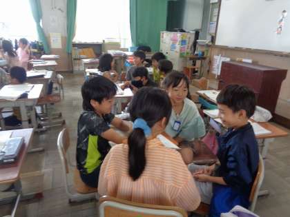友達のことを知るために、「いつ」「どこで」「何を」などの言葉を使って友達に質問する練習をしました。最初は難しそうにしていましたが、何度か取り組む中で質問の仕方が上手になりました。振り返りでは、質問することで友達のことを詳しく知ることができたと話す児童が多くいました。