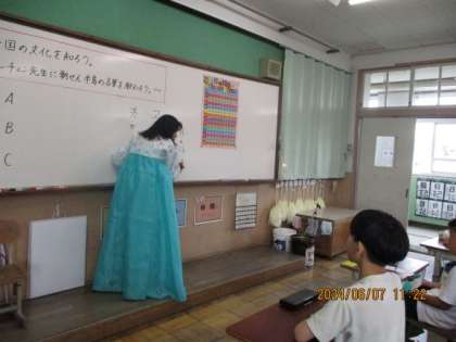 授業参観にゲストティーチャーのチョン先生が来ていただきました。