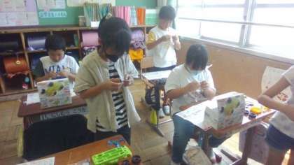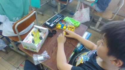 電気のはたらきの学習でキットを作りました。みんな説明書を一生懸命に読みながら作っていました。