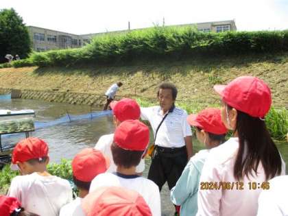 漁業組合の方々に来ていただき、魚の捕獲体験をしました。天気にも恵まれ、とても楽しく活動することができました。