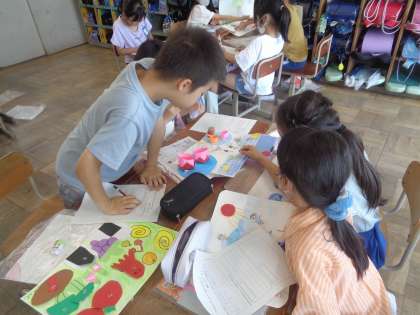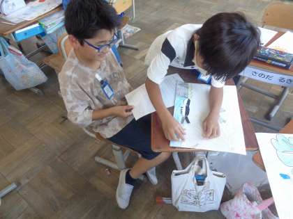 友達の作品を鑑賞し、作品のよいところや、おもしろいなと思ったところ等を伝え合いました。