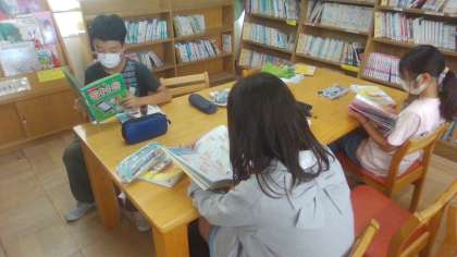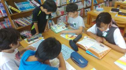 国語の学習でデジタル機器との関わりについて考え、問題点を出してそれをどう解決するかの提案文書を書いています。自分たちの提案文書のテーマに合った本を見つけに図書館へ行きました。