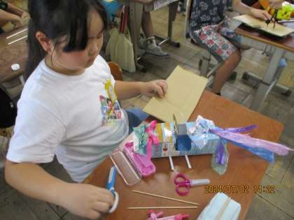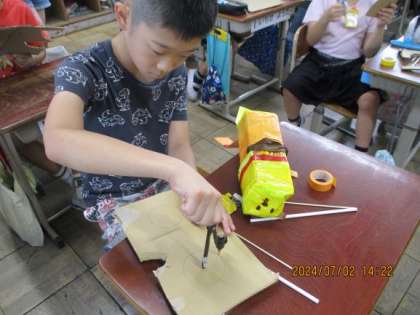 スムーズに走るよう、タイヤの形や大きさ、数を工夫しながら作りました。