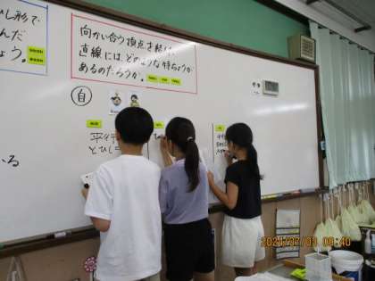 ひし形の対角線の特徴についてみんなで話し合いました。