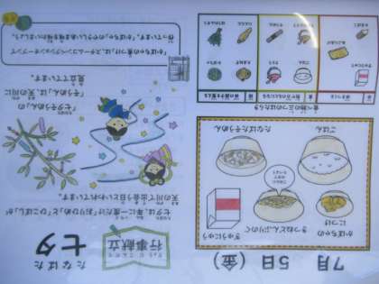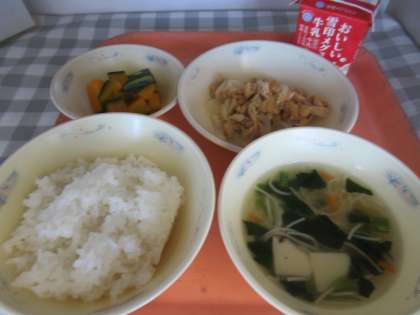 ごはん、牛乳、きつね丼(具)、かぼちゃの煮つけ、七夕そうめん
