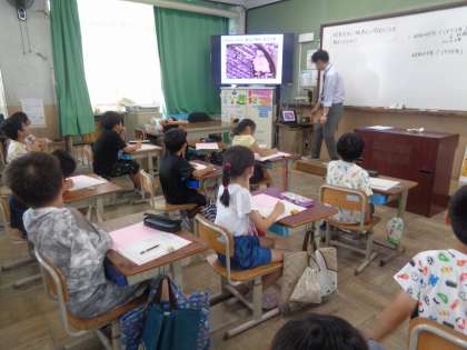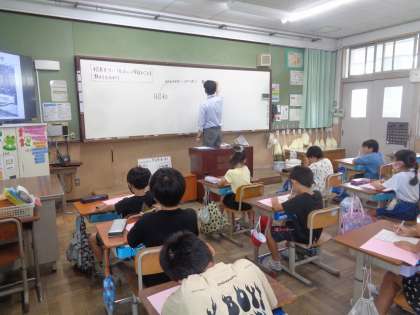 総合的な学習の時間に、梅津北小学校の歴史について校長先生にお話をしてもらいました。