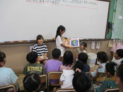 今日は本係さんが読み聞かせをしました。