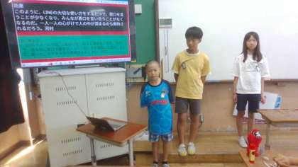 班で作成した提案書をみんなに向けて発表し、感想を伝え合いました。