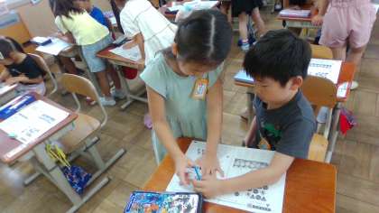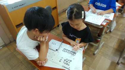 早くできた児童は、友だちの様子を見ながら計算の仕方を伝えています。