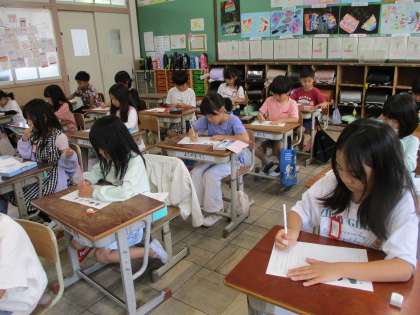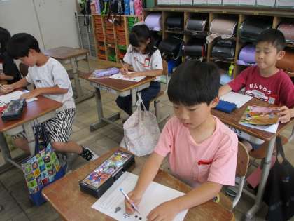 『ラッコ』『シーツ』『ピザ』など、片仮名の書き方の違いや、長音・濁音・半濁音の書き方や、促音の書く位置を学びました。