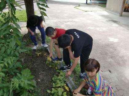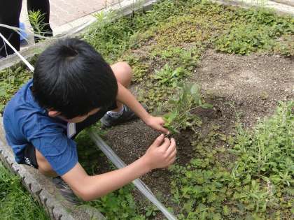 みんなで水やりをしたり、雑草抜きをしたりして世話をしてきた夏野菜のえだまめが大きくなり、クラスで収穫しました。もって帰っているのでぜひ食べてみてください。