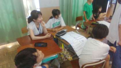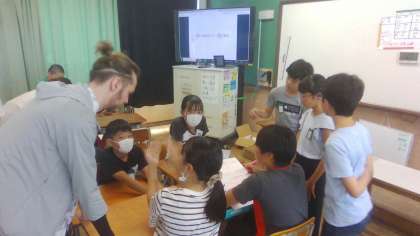 今日は、ALTの先生とのお別れ会をしました。一緒にクイズに答えてもらったり、コントを見てもらったりと楽しい時間を過ごすことができました。また、会えるといいですね。