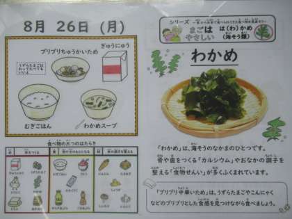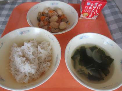 麦ごはん、牛乳、プリプリ中華いため、わかめスープ