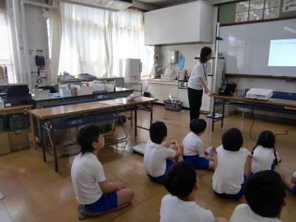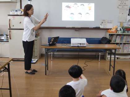 2学期の身体計測がありました。身体計測の前に唐田先生から「じぶんでできるけがのてあて」のお話があり、鼻血が出た時、こけた時、やけどの時にできることを教えてもらいました。その後、身長と体重を測りました。