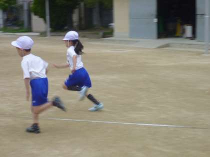 一生懸命に手をふって走る子がいたり、初めてのことなので隣りのお友だちを見ながら負けじと走る子がいたりと、みんな一生懸命に走っていました。